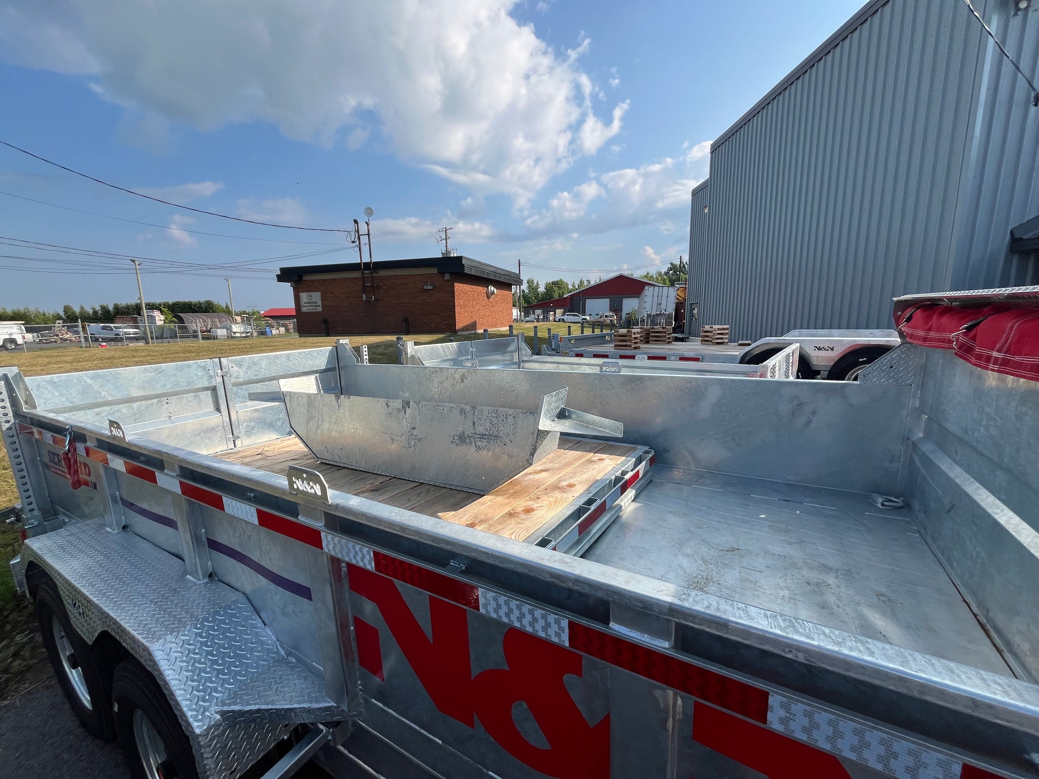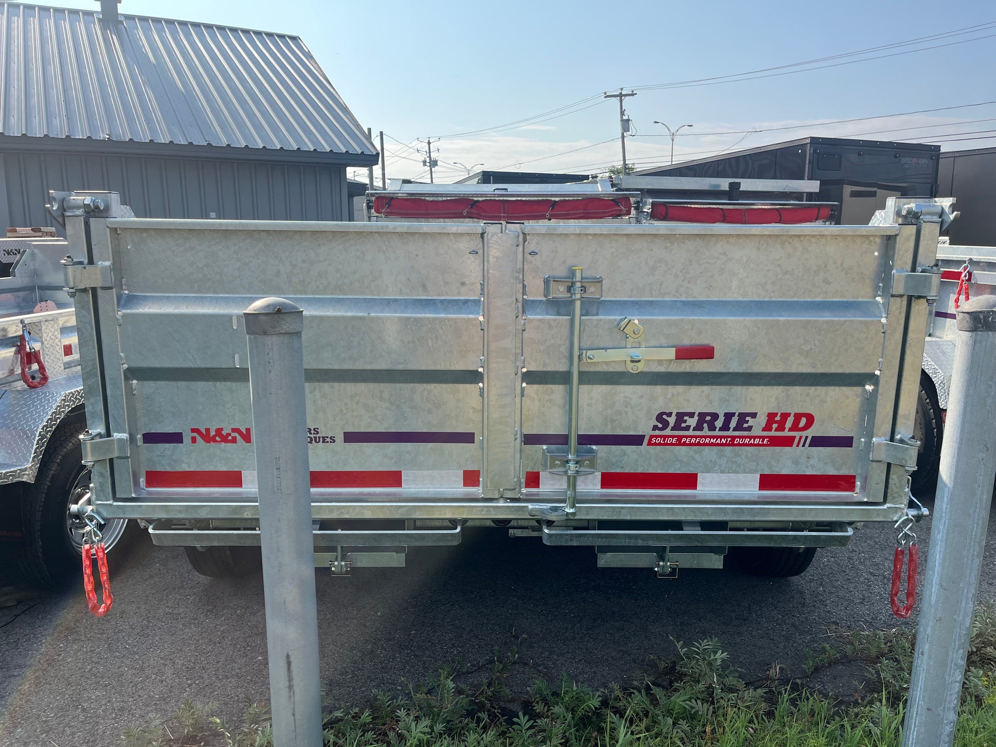 Remorque Dompeur Gooseneck (ou 5th wheel au choix),  dimensions 82'' x 168' (14 pieds), structure galvanisée, Double essieux galvanisés de 7500 livres avec suspension à glissière, freins électriques, côtés de 24'', porte arrière combo, 2 rampes de chargement sous la remorque, toile et protecteur de toile, lumières LED, pneus 235/80R16 14 ply, 4 ancrages type d-rings soudés à la structure, structure doublée, chargeur batterie 110V intégré, coffre d’aluminium verrouillable, 2 vérin 12,000 livres, support à madrier, pieds stabilisateurs,  Fabriquée au Québec.