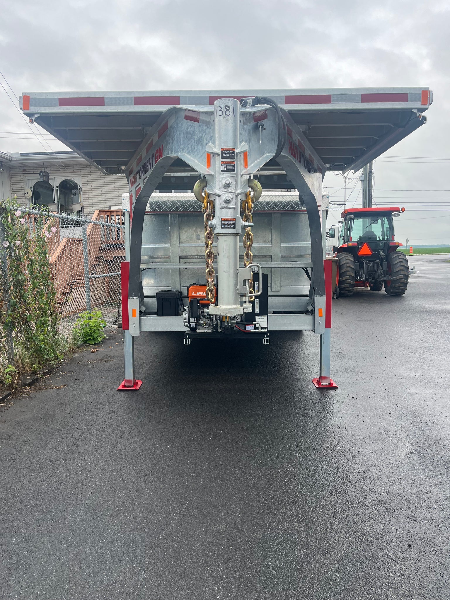Remorque Dompeur Gooseneck (ou 5th wheel au choix), dimensions 82'' x 192'' (16 pieds), structure galvanisée, essieux 10,000 livres ch avec suspension à glissière, freins électro-hydraulique, côtés de 24'', porte arrière double action, 2 rampes de chargement sous la remorque, toile et protecteur de toile, lumières LED, pneus 235/75R17.5 16 ply, 4 ancrages type d-rings soudés à la structure, structure doublée, moteur au gaz pour power unit,, 2 vérin hydrauliques, plateau de 6' x 8' sur gooseneck, support à madrier, pieds stabilisateurs, Fabriquée au Québec.